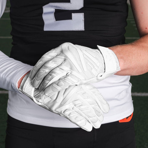 All the fit, feel and elite performance in a receiver glove to dominate the opposition and make every play a highlight. Air C-TACK™ perforated grip performs on every play and keeps you cool—to renew your grip, simply wet your gloves with water and wipe with a towel.