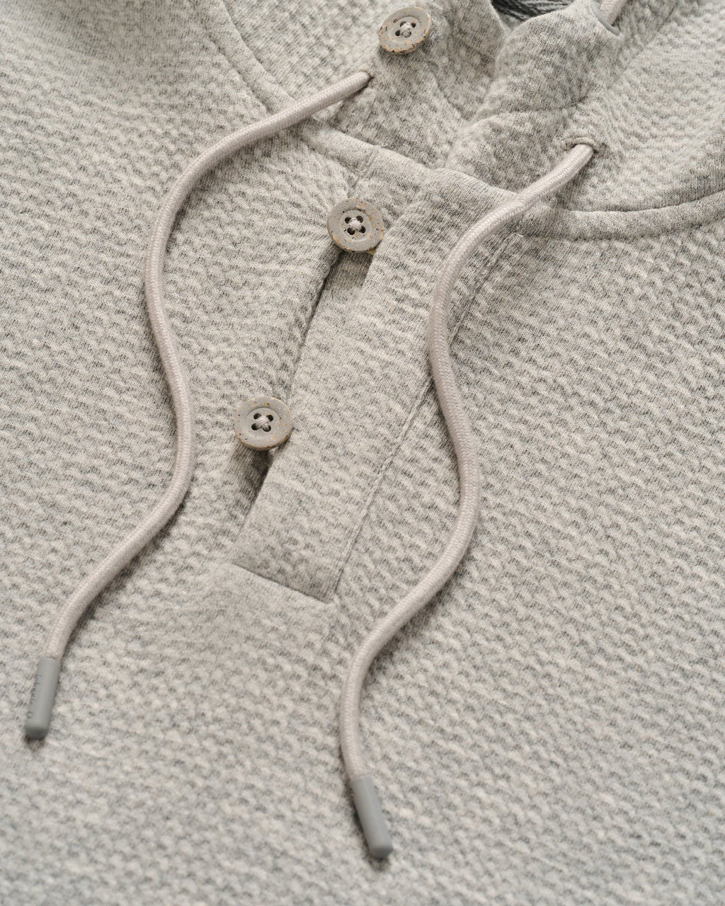 An elevated relative to your favorite gym hoodie that works a little better for the day-to-day, the Kester is finished with a buttoned placket for a nice bit of topspin and is knit with a textured weave that feels extra nice on the skin and stands out from the crowd.