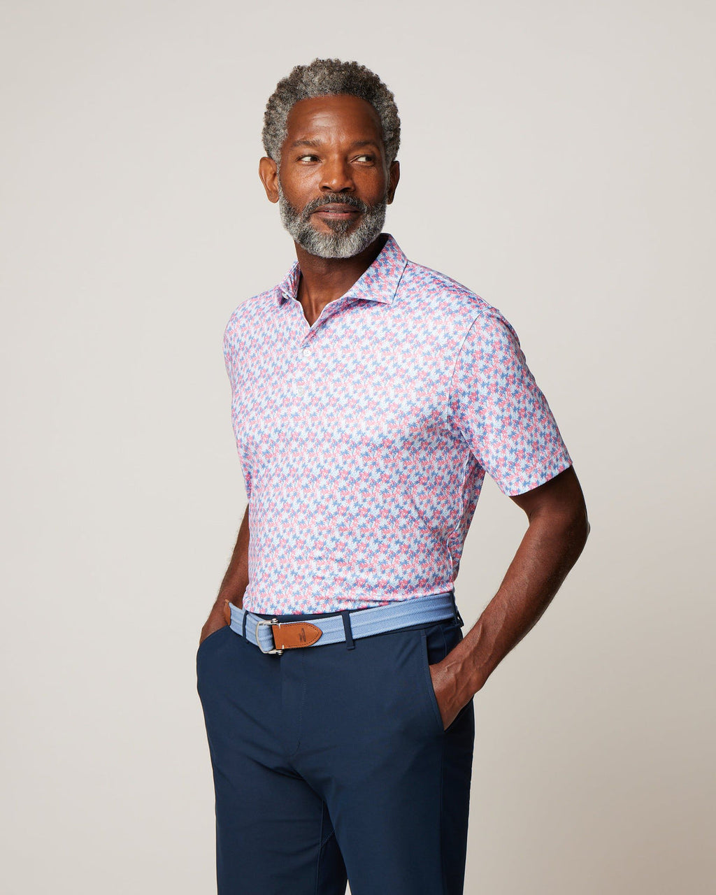 A sharp looking polo with a crisp floral print. Made in our signature performance jersey fabric, the Royal Palm wicks away sweat and moves with you both on and off the course.