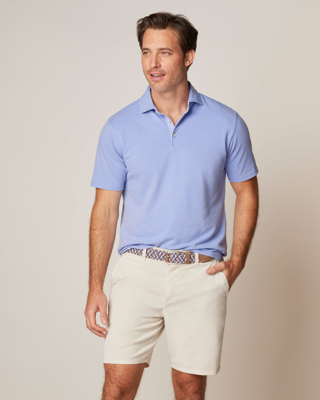 Inspired by the laid-back lifestyle along the California coast, the Shoreline polo is made with an ultra soft snow washed and garment dyed cotton pique for the perfect lived-in look. Details like the tonal button stitching, printed yoke, and "johnnie-O" embroidery on the back collar stand elevate the look of this casual polo.
